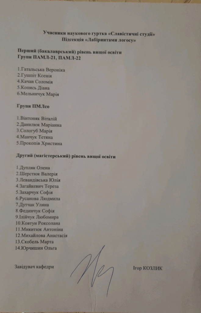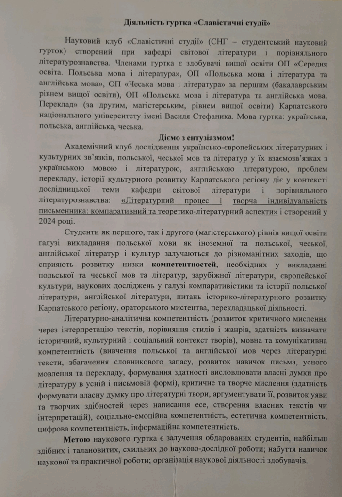 Наукова діяльність студентів Збірник студентських наукових праць: Славістичні студії – 2021 Славістичні студії – 2020